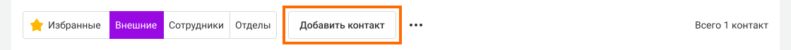 Контакты коллег — всегда под рукой. Контакты сотрудников и отделов располагаются на соответствующих вкладках, остальные контакты — на вкладке «Внешние».