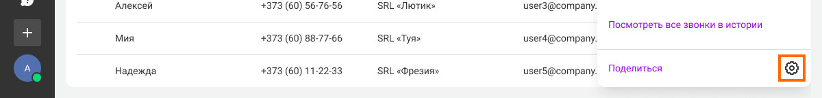 В карточке контакта на вкладке «О контакте» нажмите на шестеренку.