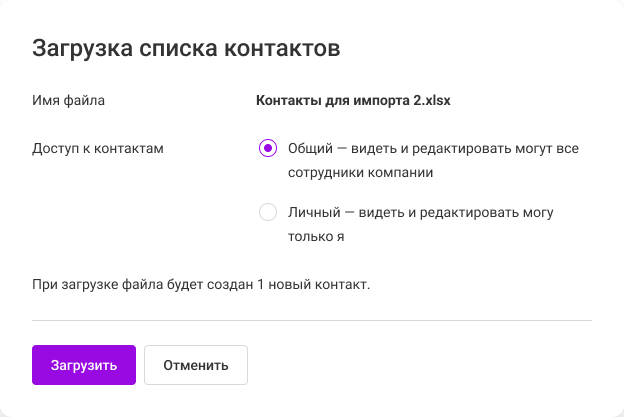 5. Выберите, кто должен иметь доступ к этому списку контактов — только вы или все сотрудники компании.