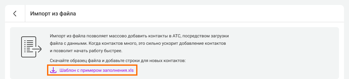 2. Скачайте шаблон файла Excel с примером заполнения списка контактов.