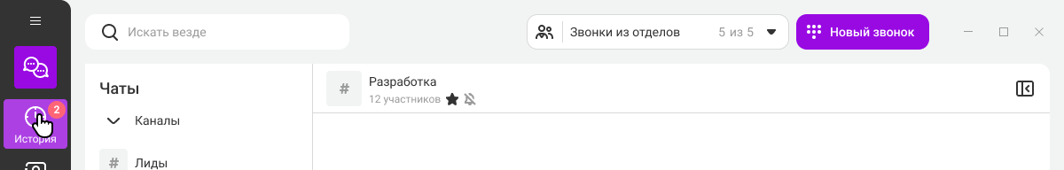 На иконке истории в боковом меню отображается общее число пропущенных звонков, как личных, так и по вашему отделу.