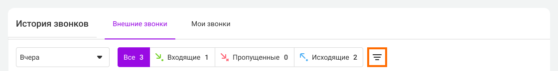Нажмите на кнопку «Фильтры», чтобы открыть панель фильтров. С ее помощью можно отфильтровать звонки не только по клиентам и сотрудникам, но и: