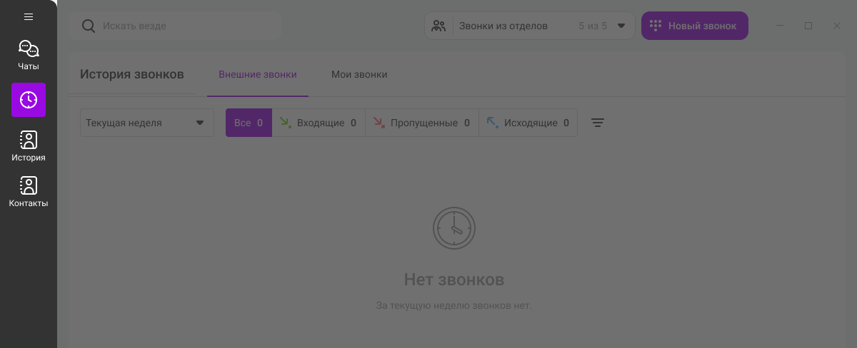 Чтобы быстро найти нужного клиента, коллегу или канал, воспользуйтесь единым окном поиска. Прямо из окна поиска можно написать или позвонить контакту.