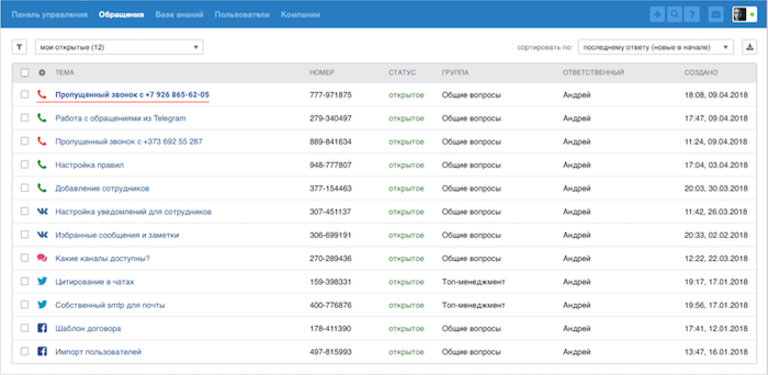 Конечно, группировка пропущенных звонков в рамках одного обращения происходит лишь в случае, если между ними не было состоявшегося звонка между пользователем и сотрудником. Если разговор был, по следующему пропущенному звонку мы создадим отдельное обращение.
