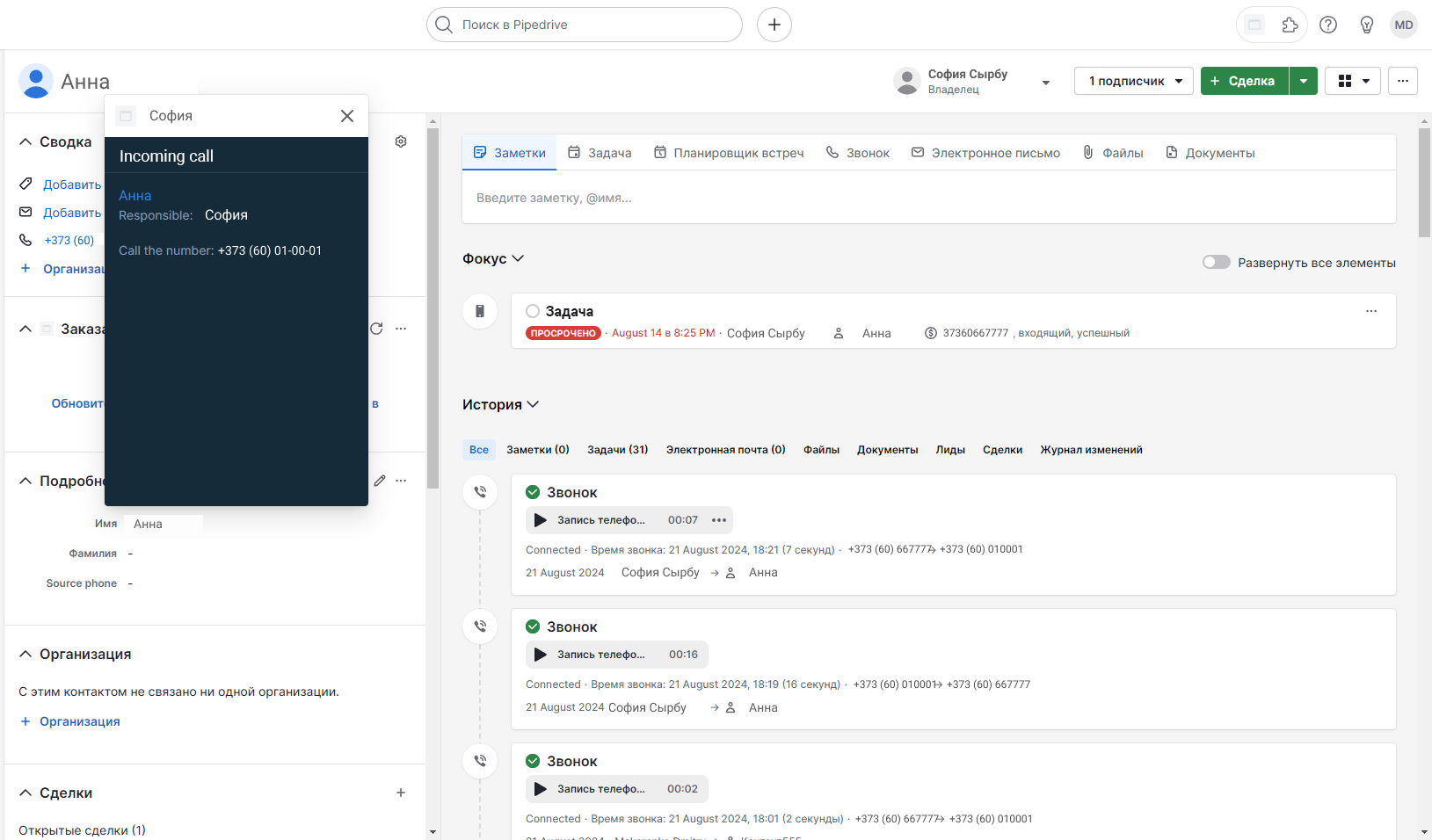 Если у вас еще нет интеграции Pipedrive c АТС , изучите инструкцию по интеграции и настройте ее прямо сейчас:
