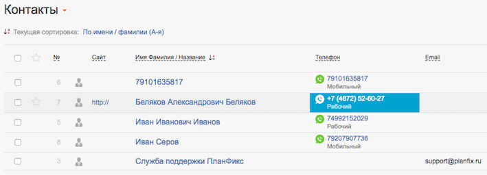 Если новый клиент позвонил в компанию и его номера еще нет в контактах, «ПланФикс» автоматически создаст контакт. В качестве имени будет указан номер клиента.