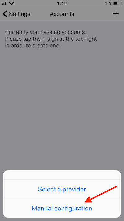 2. Зайдя в приложение вы увидите сообщение, что у вас еще нет аккаунта. Создайте новый, нажав на плюс справа вверху.