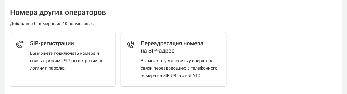 Функция предоставляется без дополнительной платы. Вы можете подключить до 30 внешних номеров. Для расширения лимита обратитесь в поддержку.