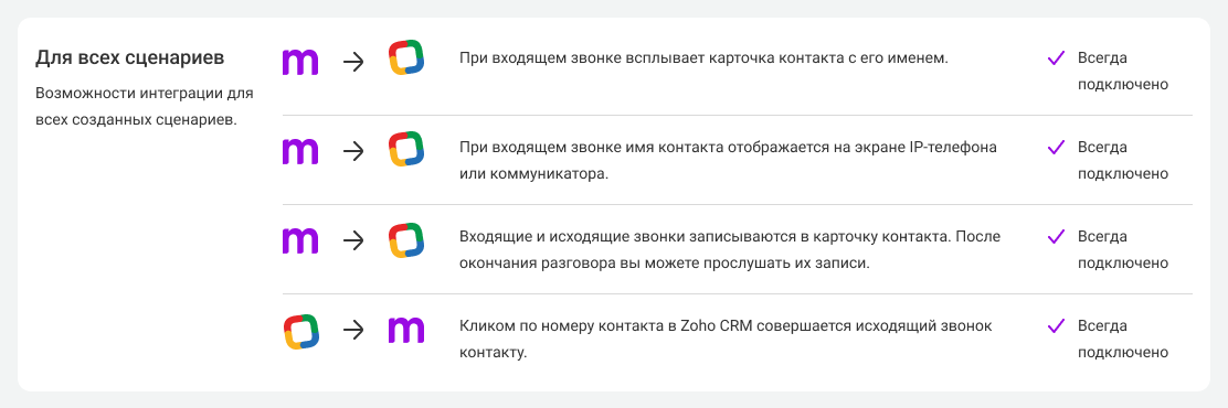 На этой странице описываются шаги по подключению и настройке интеграции Zoho CRM и АТС. Чтобы выполнить их, проверьте, что обладаете правами администратора в обеих системах.